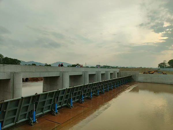 湖南常宁高毕堰液压翻板闸首次动水试验成功